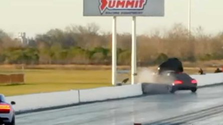 However, if you think that drag racing is harmless, you are wrong and we have the video to prove it. As you can see in the snippet embedded above, courtesy of YouTube Turnpike Racing Leaguetwo Audi R8 coupes (one black, one white) line up on the drag strip for a signature drag race.