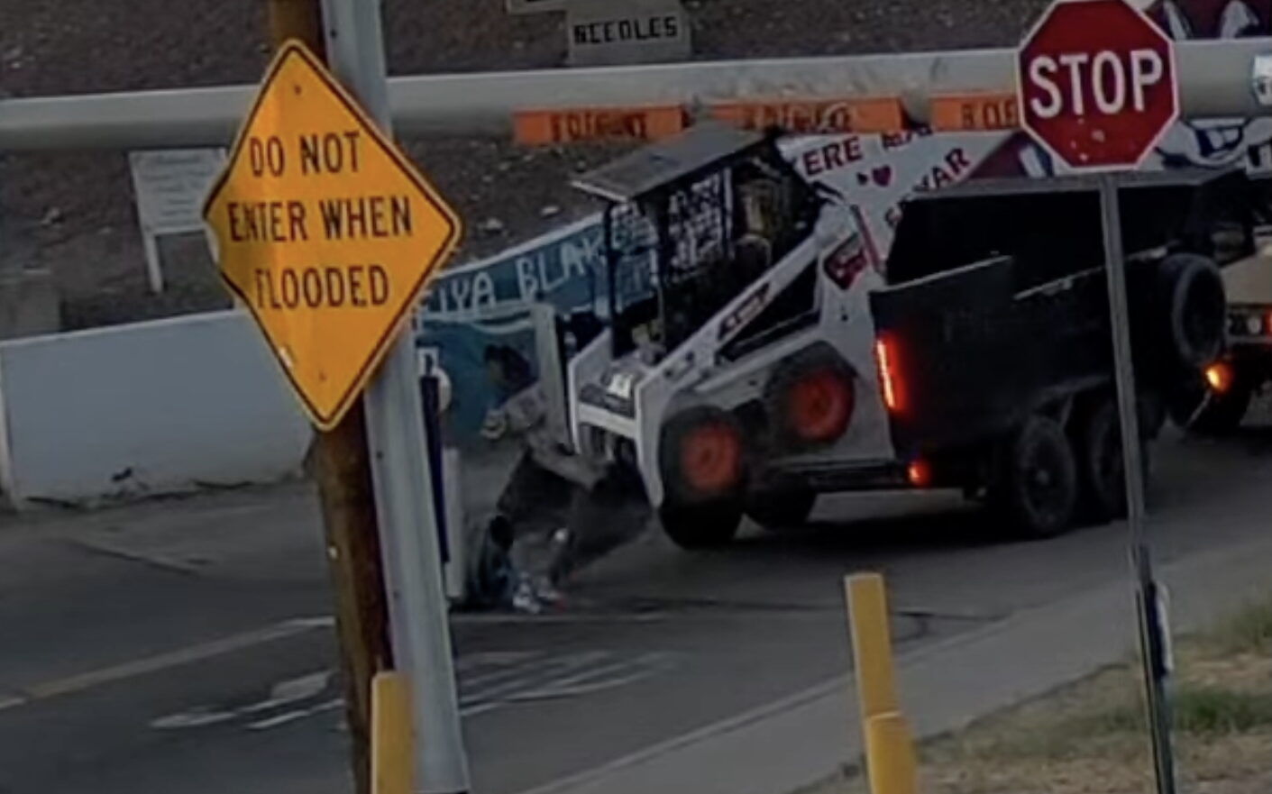 The video begins with a view of the underpass at Needles, where clearly marked height warnings are installed with horizontal pipes positioned in front of the underpass. The pipe serves as a physical indicator of the height of the underpass, alerting drivers if their load exceeds the safety clearance height. If it looks familiar, that’s because we’ve discussed this underpass before.