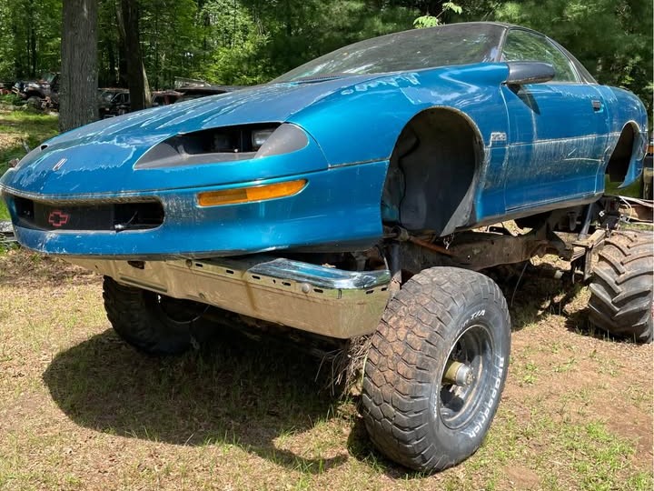 A Facebook Marketplace registered in Marinette, Wisconsin presents a vehicle that expands the definition of a project car. The seller describes it as a fourth-generation Chevy Camaro Z28 body mounted over a 1988 Chevy K5 Blazer frame. The two are not integrated but rather coexist. The body “just rests” on the frame, according to the post, with an asking price of just $500.